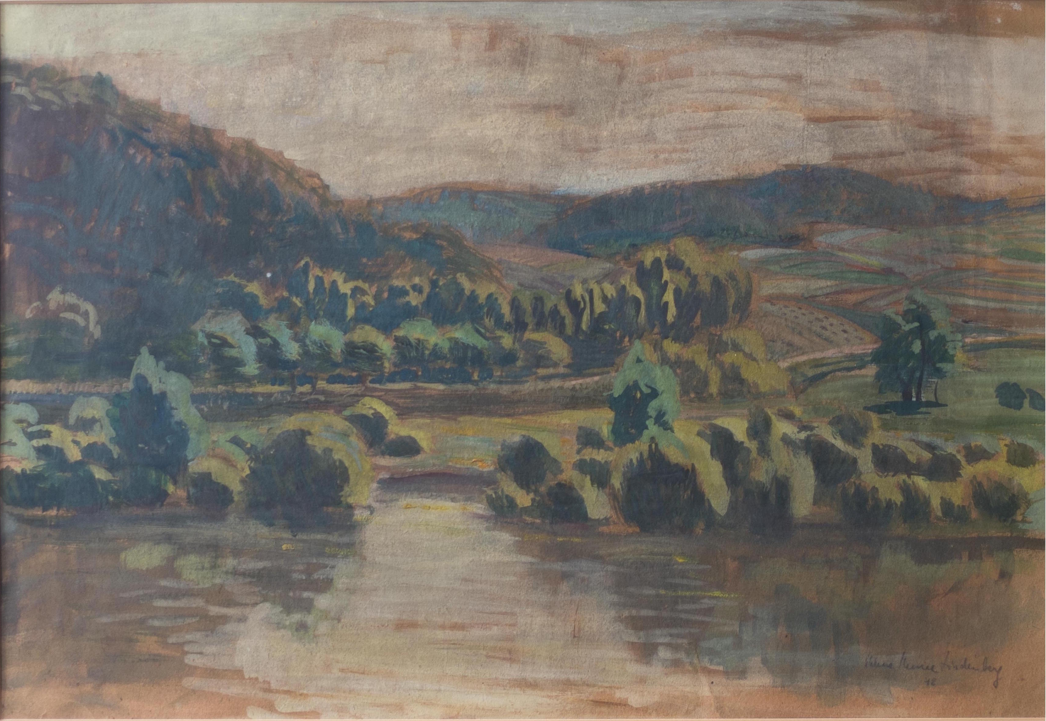 Große AnsichtLandschaft, WV-Nr.: 0018, Malerei, 43 x 61 cm, Tempera auf Karton, dat.: 48, sign.: H. Menne-Lindenberg