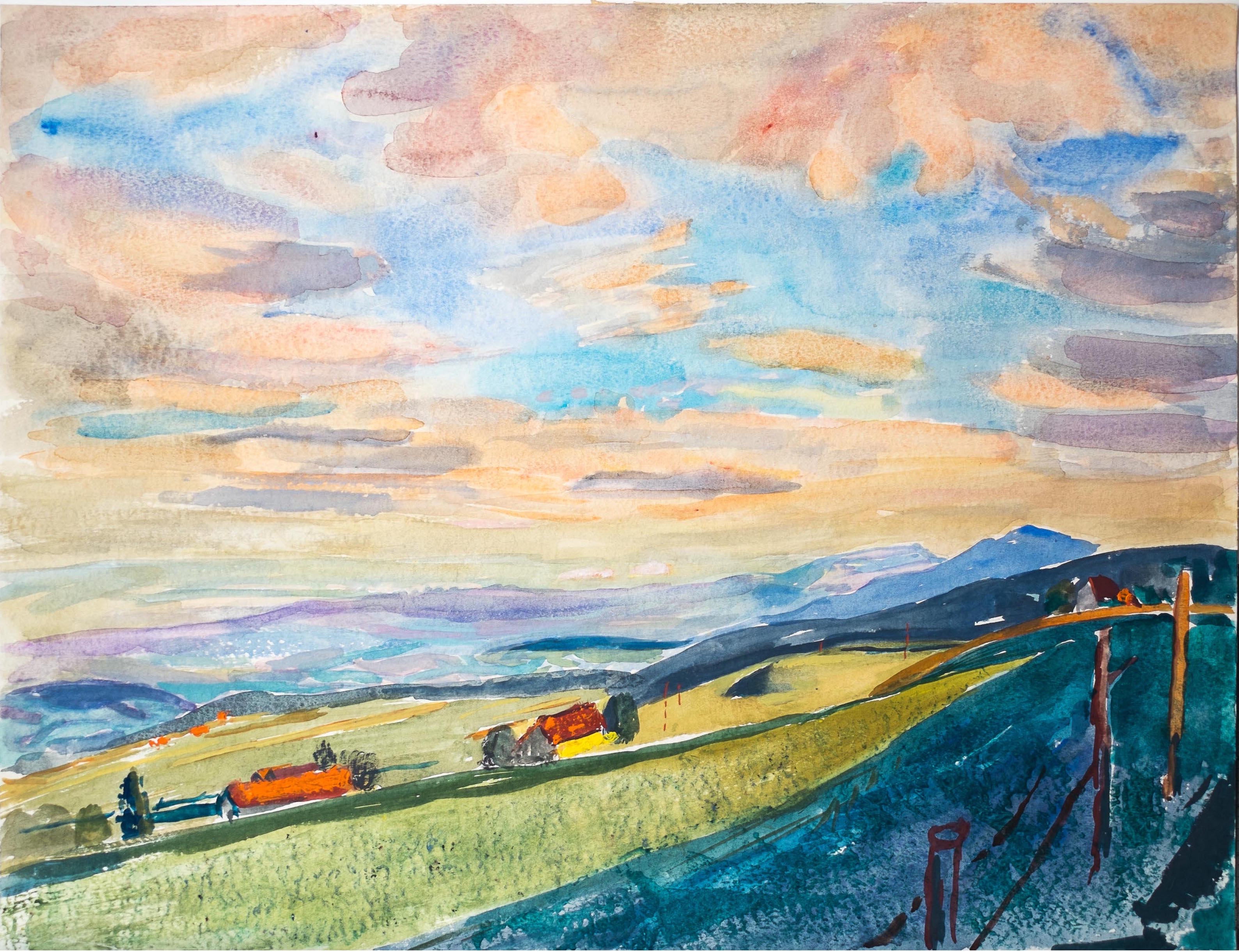 Große AnsichtLandschaft, WV-Nr.: 0184, Malerei, 50 × 65 cm, Tempera auf Karton