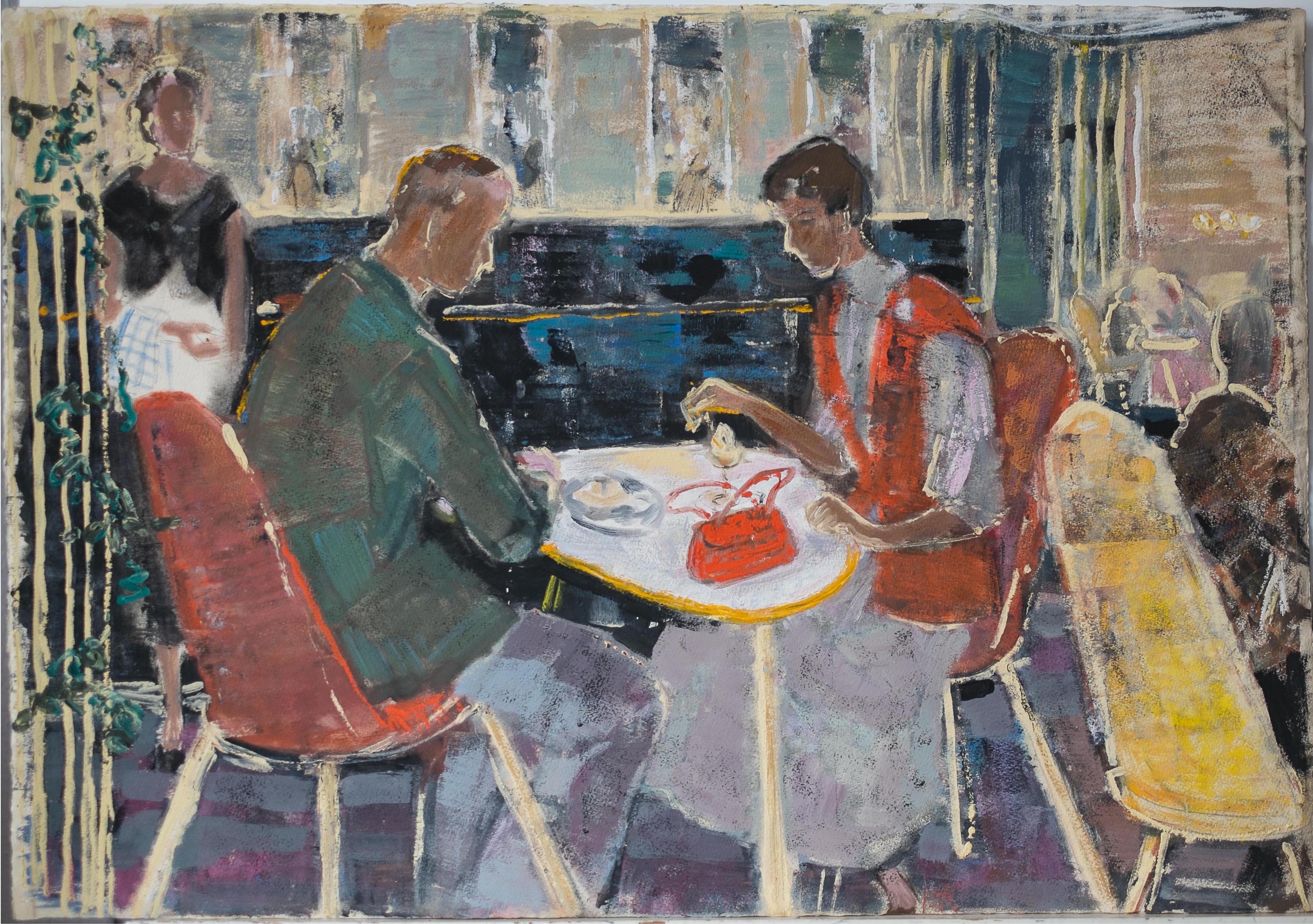 Große AnsichtIm Café, WV-Nr.: 0296, Malerei, 57 × 80 cm, Tempera auf Karton
