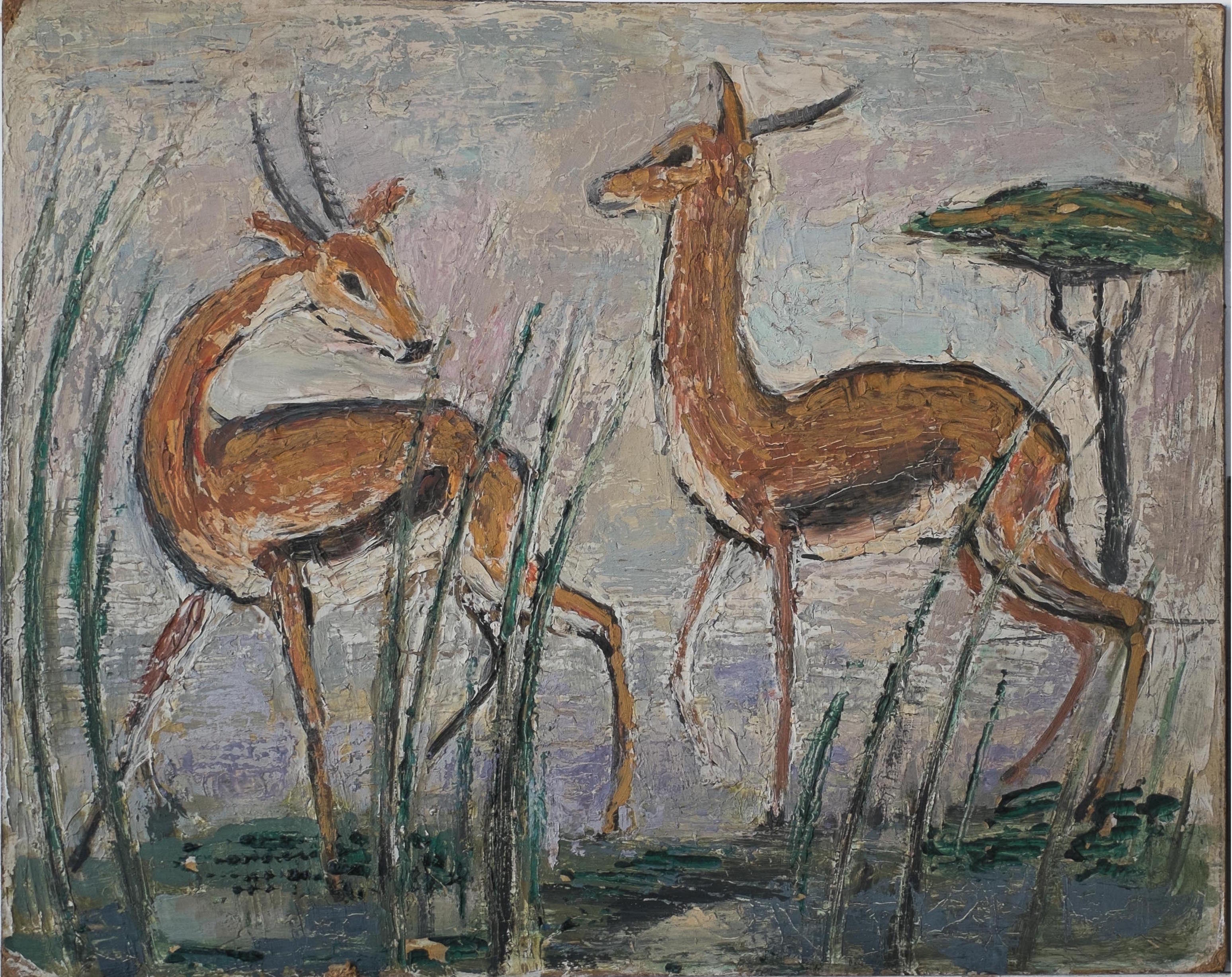 Große AnsichtAntilopen, WV-Nr.: 0325, Malerei, 40 × 50 cm, Tempera auf Hartfaserplatte