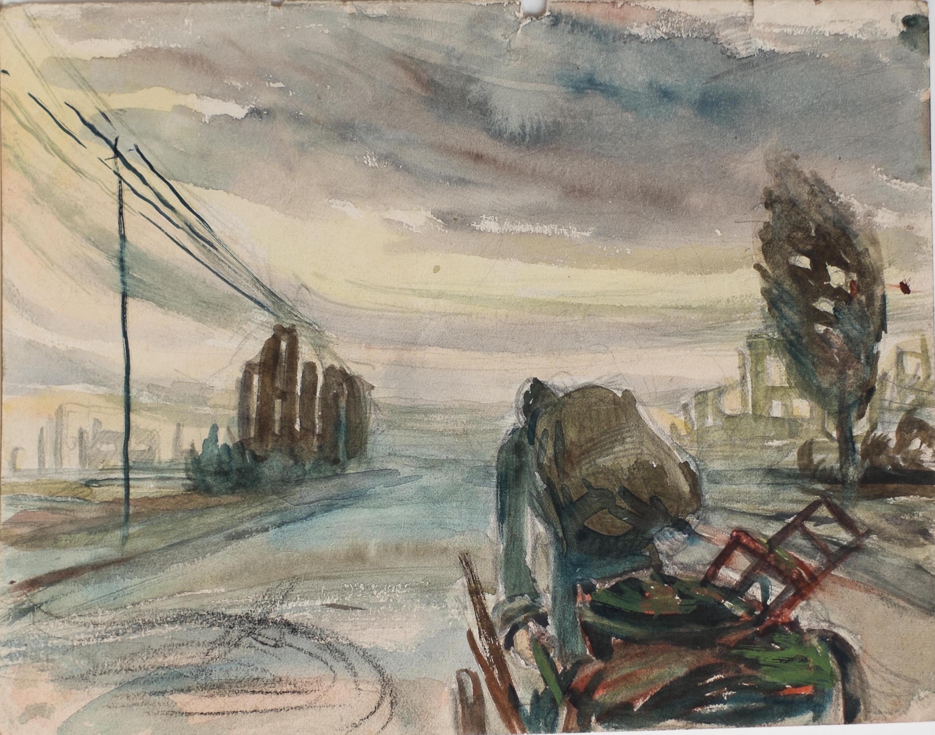 Flüchtling, WV-Nr.: 0563, Malerei, 17 x 21 cm, Bleistift und Aquarell auf Papier