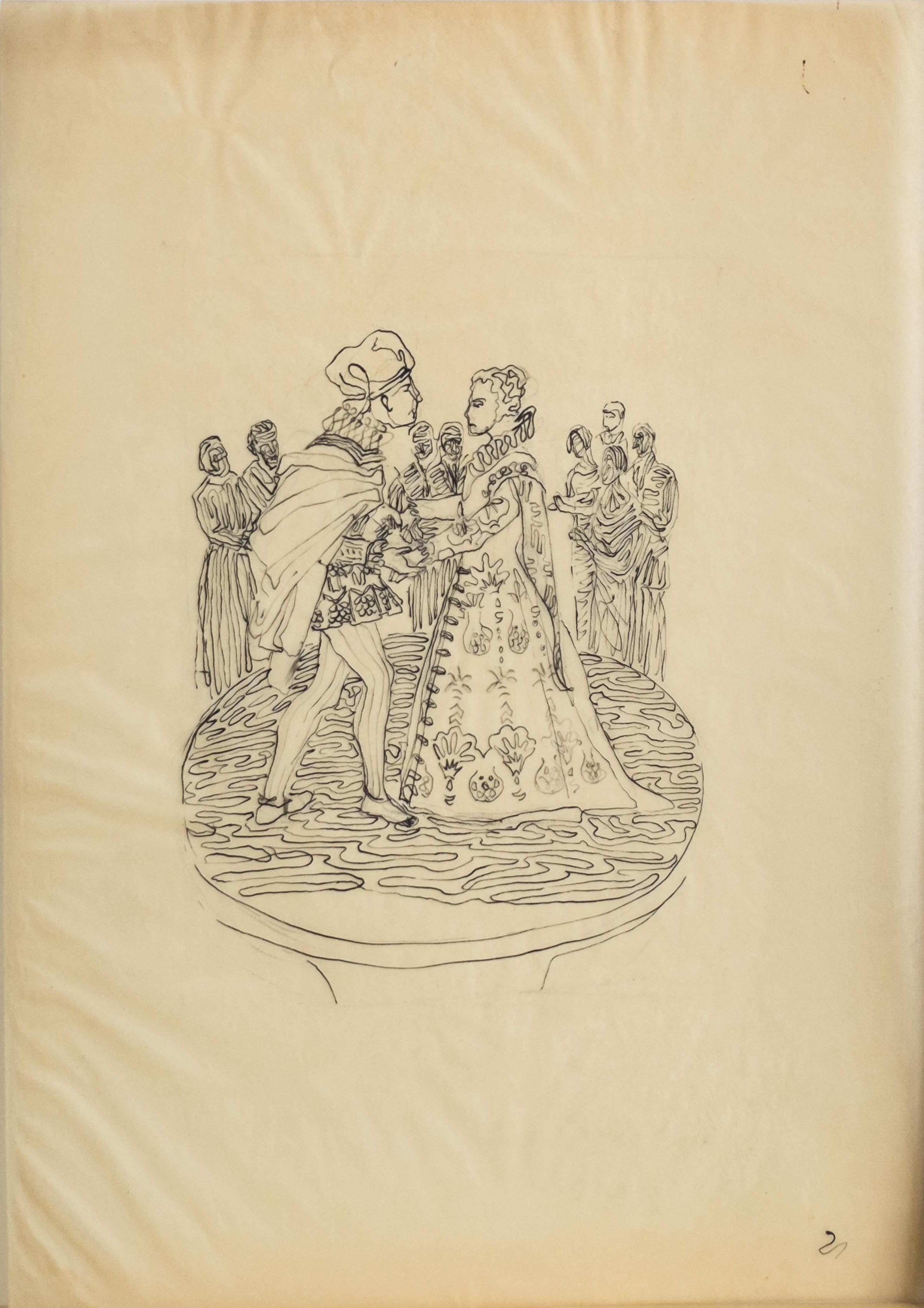 Märchenpaar, WV-Nr.: 0650, Zeichnung, 21 x 30 cm, Tuschefeder auf Transparentpapier